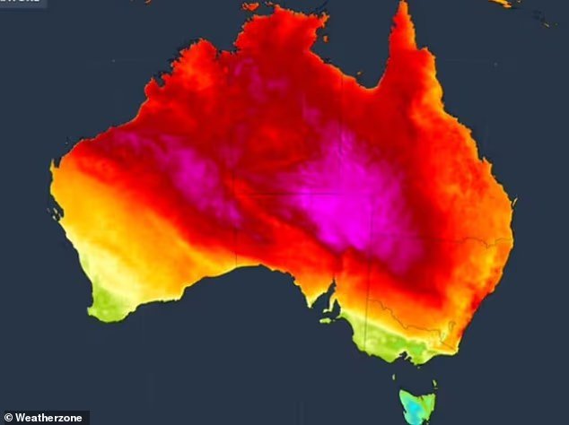 ‘Também com uma temperatura prevista de 39ºC para Gosford e Newcastle, bem como mais ao sul para Wollongong, uma máxima de 37ºC abaixo.’