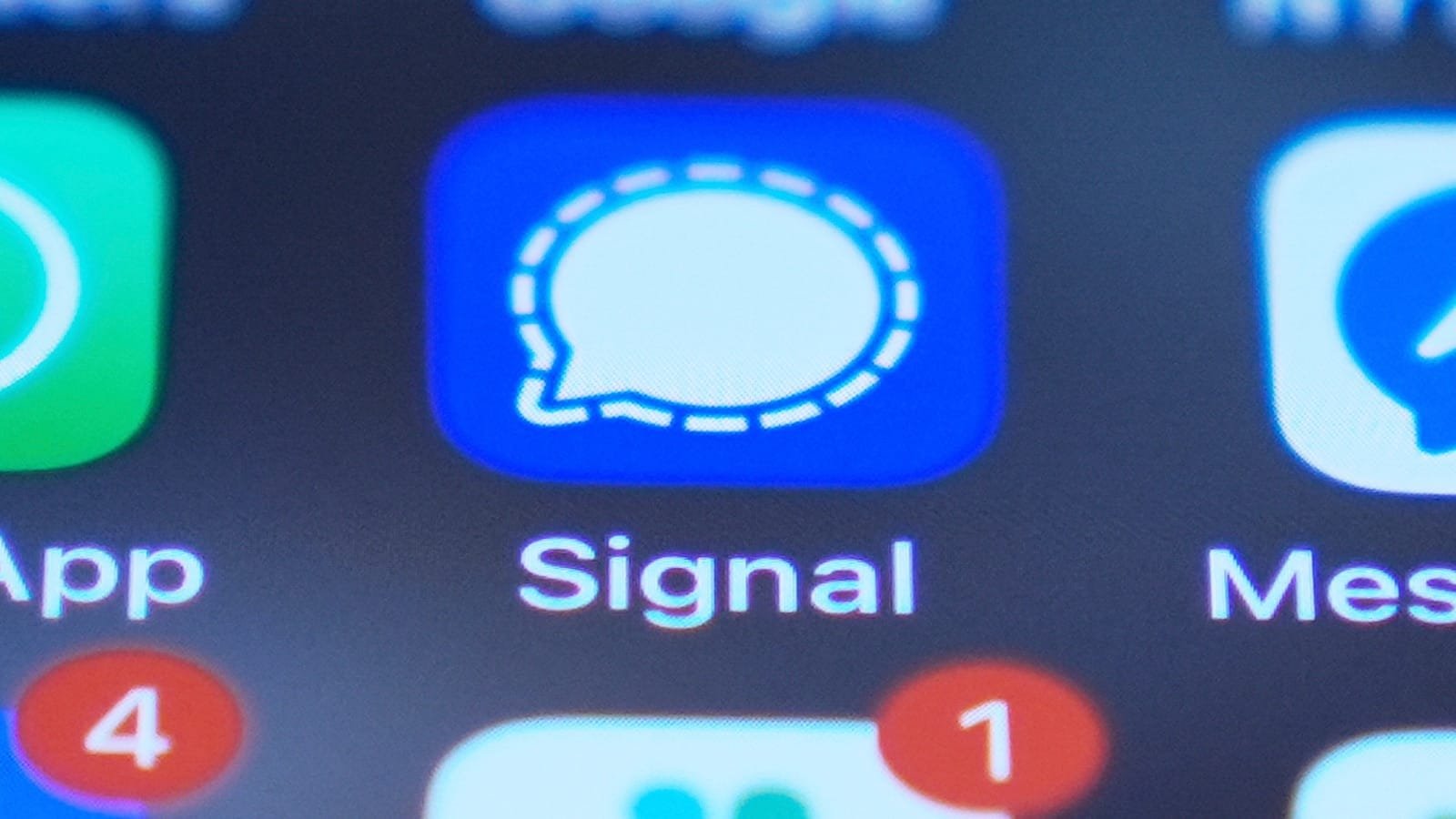 O aplicativo de sinal em um smartphone é visto em Chicago em 25 de março de 2025, em uma tela de dispositivo móvel.