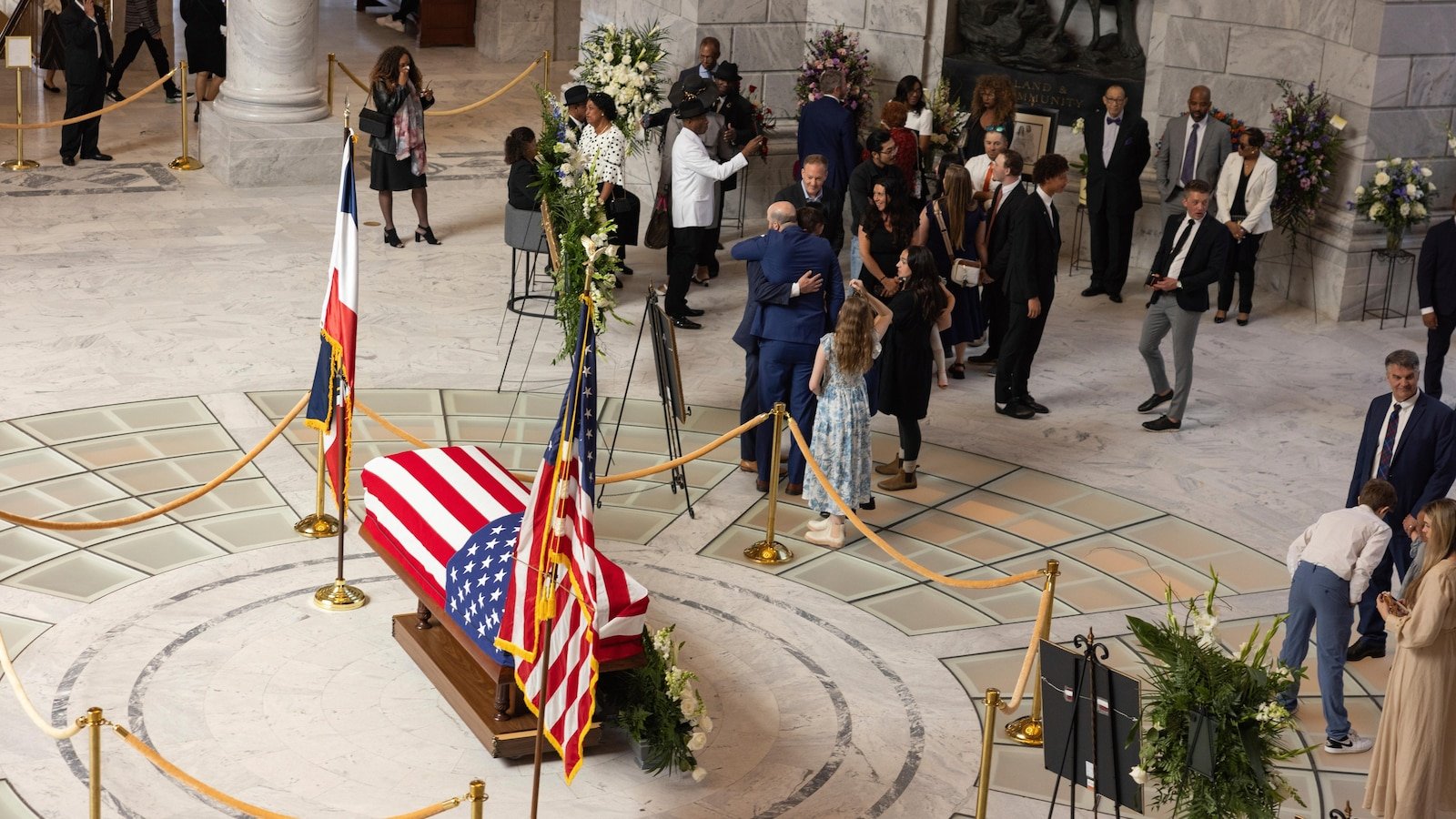 Os legisladores e membros públicos do estado visitaram Uta Capitol na noite de domingo para prestar homenagem ao caixão coberto de bandeira do amor atrás da corda na rotunda do edifício.