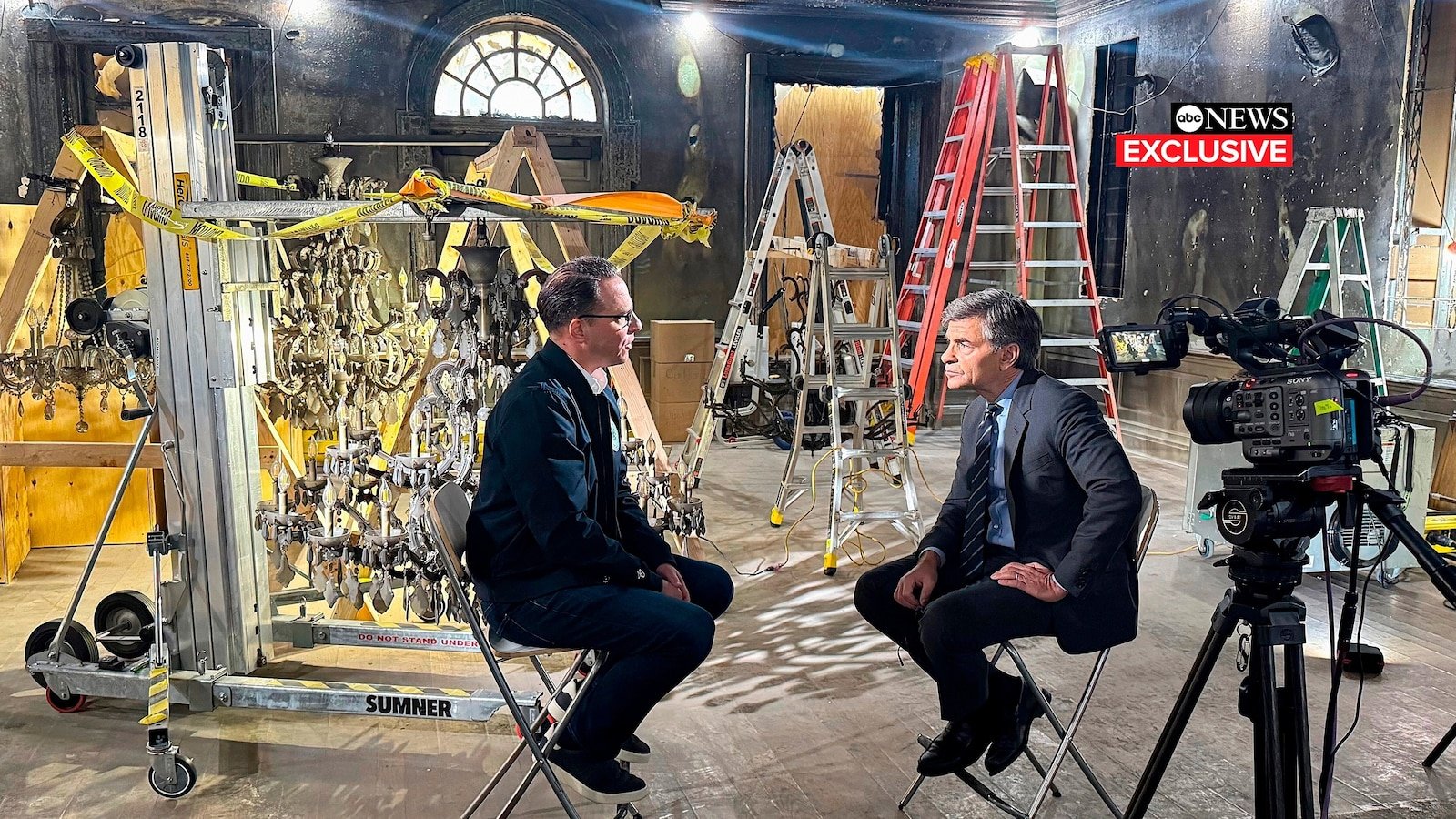 Em uma entrevista à ABC News com o governador da Pensilvânia, Josh Shapiro George Stephanopallos, ele falou em uma entrevista na sala danificada na residência do governador em Harrisburg, em 17 de abril de 2025.