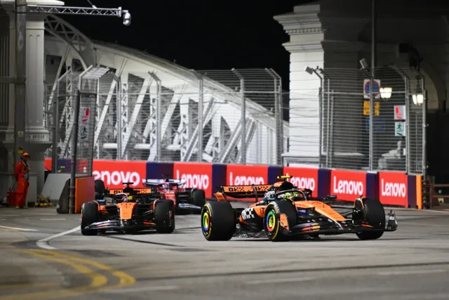 O Grande Prêmio de Domingo de Cingapura dobrou o título de seu segundo fabricante consecutivo. Lando Norris é o vencedor do terceiro lugar, George Russell e Max Vertpen, é o terceiro e Oscar Pistry é o quarto.