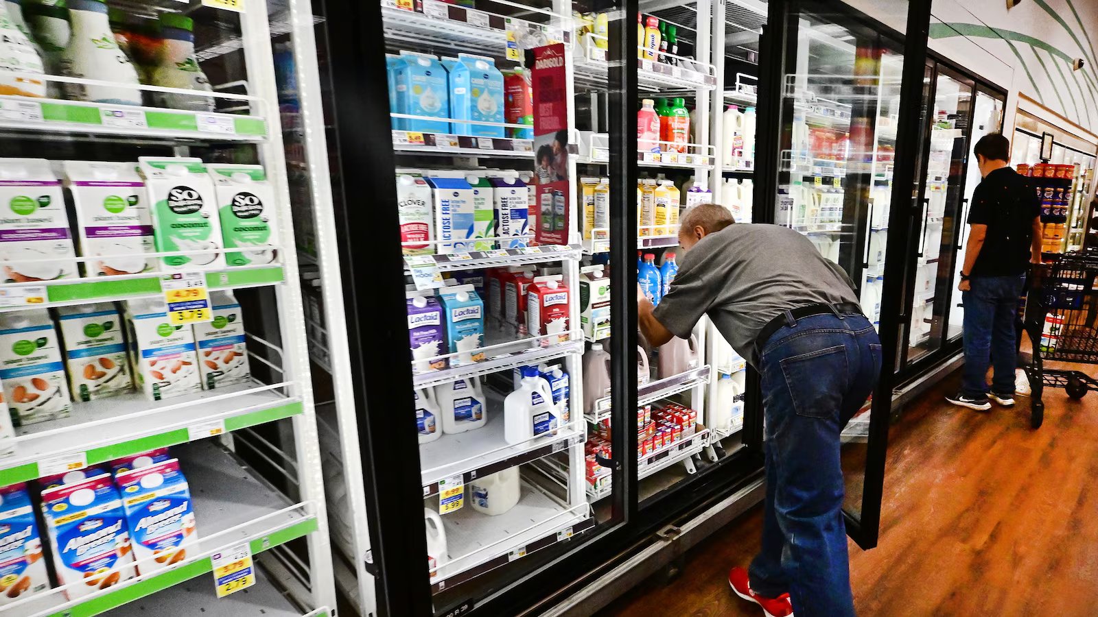 Em 9 de setembro de 2025, pessoas compram laticínios em um supermercado em Montre Park, na Califórnia.