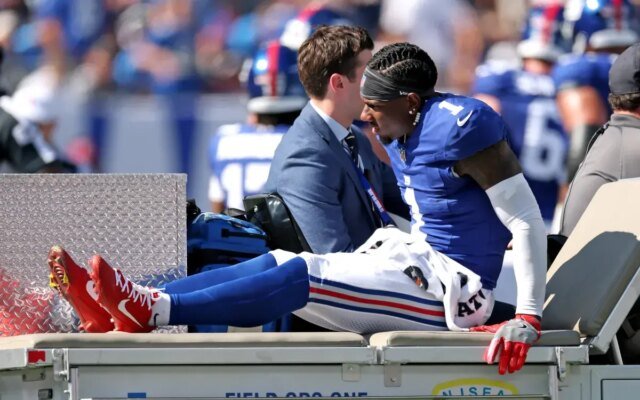 O proprietário do New York Giants, Nabers Los Angeles Chargers, sofreu uma ACL rasgada na semana passada em uma vitória por 21 a 18. O segundo jogador do ano foi ao estádio MetLife para pegar a captura, mas sua conversa no joelho.
