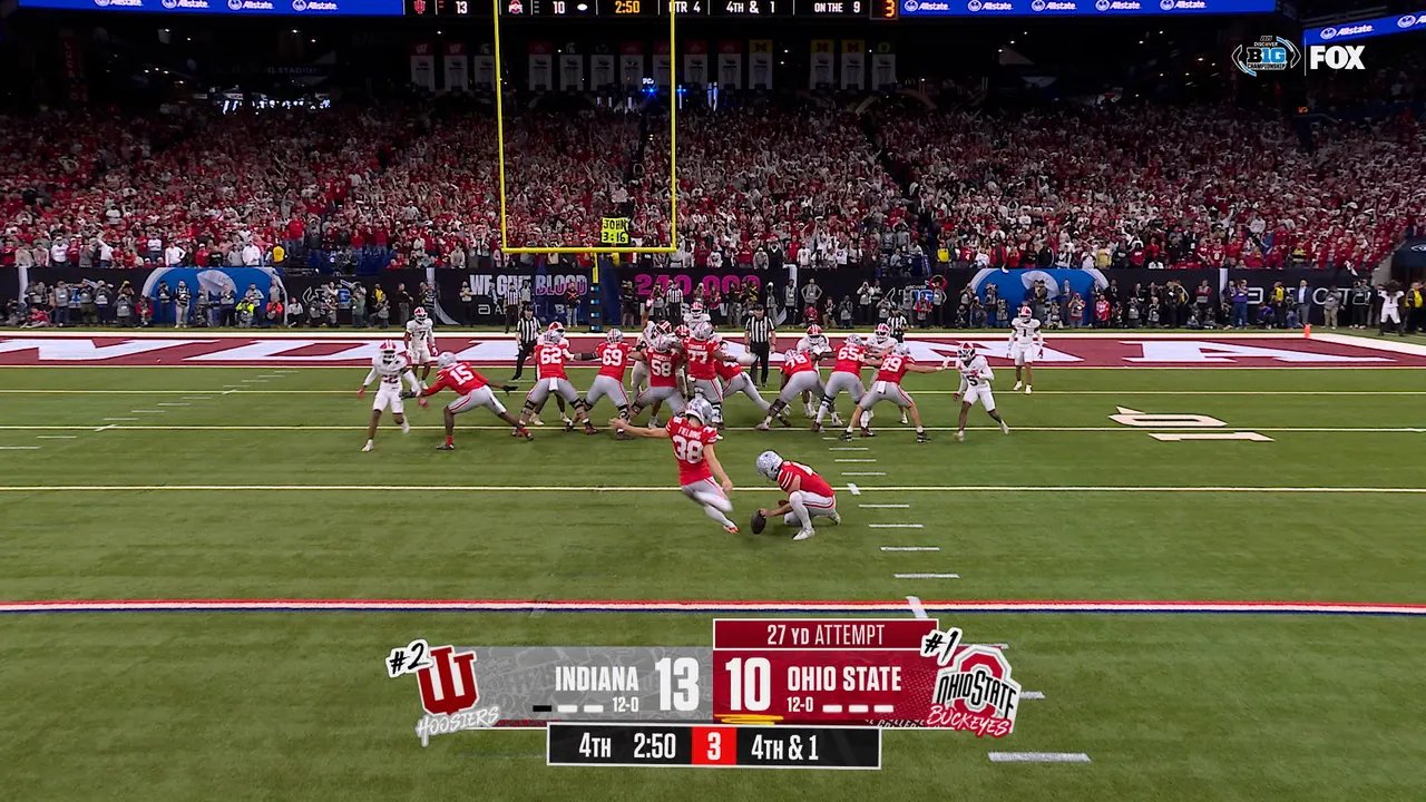 Jayden Fielding perdeu um FG de 27 jardas na vitória do Ohio State Buckeyes sobre o Indiana Hoosiers por 13-10 no Big Ten Championship.