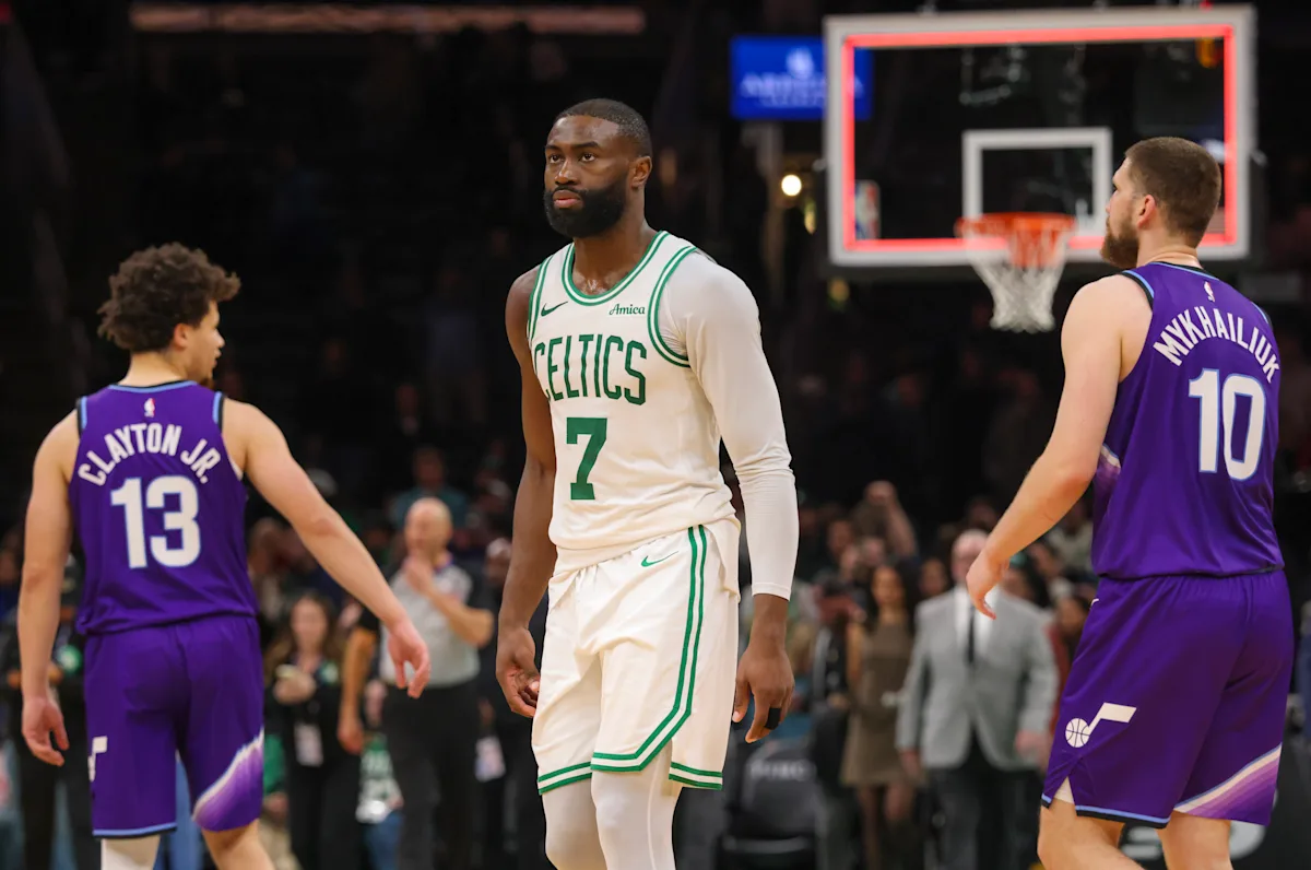 Jaylen Brown estava em alta. Marcou 11 dos 36 pontos, o recorde de sua equipe, no quarto período na noite de segunda-feira para o Celtics, que está fazendo o trabalho pesado para eliminar um déficit de dois dígitos para o visitante Jazz. Depois que Derrick White colocou o Boston à frente por um em um lance livre técnico, Brown pegou a bola e teve a chance de acertar uma adaga no coração de Utah no minuto final.