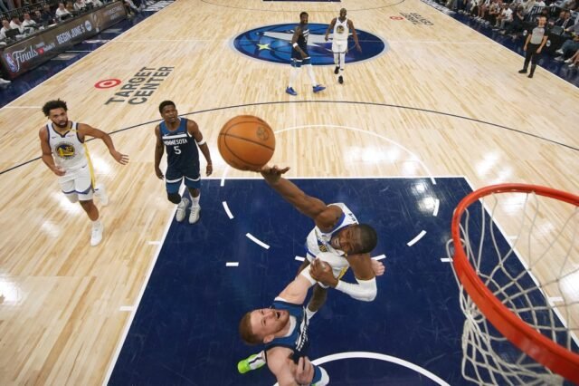 O quatro vezes o vencedor do jogador defensivo do ano Rudy Gobart, Jonathan Kuminga, estava prestes a passar a bola para Dramemond Green ou um de seus companheiros qualificados no terceiro trimestre da equipe de Miniapolis.