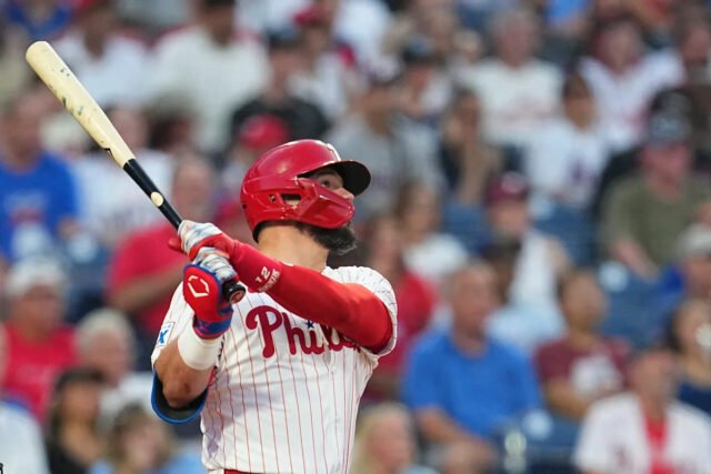Sob as sétimas entradas da cama, um sino de três corridas se submeteu no campo central, o Bell-Rings Dinger enviou, deixando seus filmes líderes de divisão uma margem de 7-1. Ele pegou um cortador de 87 mph a 437 pés e tinha um parque do Citizen Bank lotado na perna.