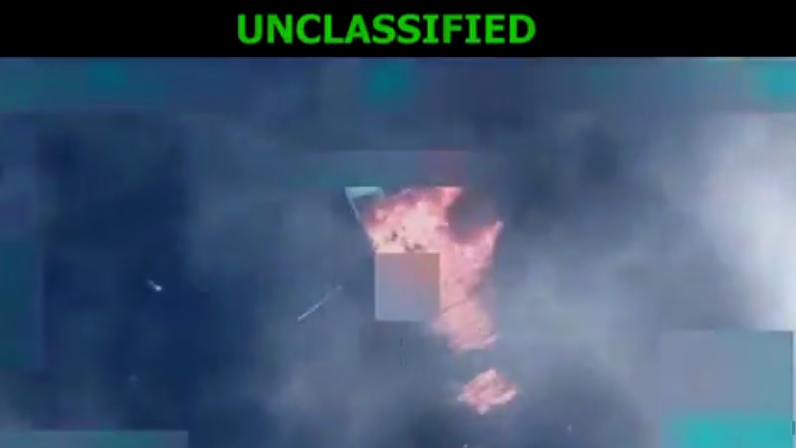 Uma imagem de um vídeo divulgado pelo presidente Donald Trump em sua conta social Truth afirma mostrar um ataque cinético mortal em um navio próximo à costa da Venezuela em 14 de outubro de 2025.