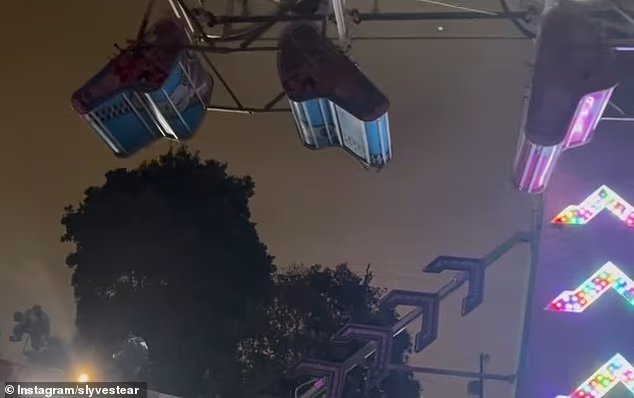 O vídeo obtido pelo Daily Mail mostra que havia vários carros no passeio com defeito, um dos quais foi violentamente separado da moldura de metal e atingiu outro veículo.