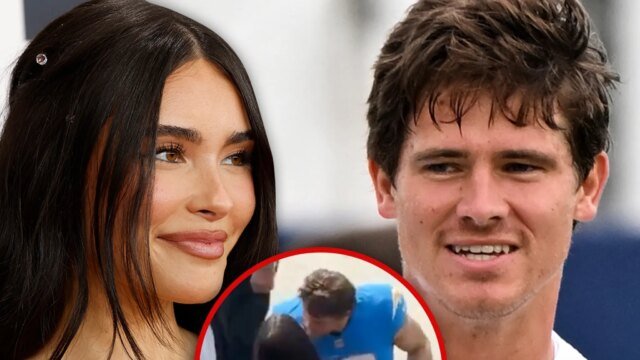 Madison Bear E Justin Herbert Domingo Los Angeles Chargers compartilhou uma rápida interação de um poder no jogo … compartilhando um beijo na linha lateral antes do jogo!