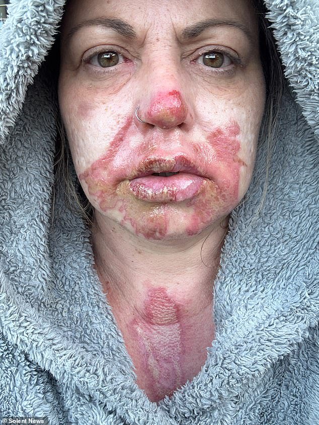 A mãe dos dois foi dolorosa em queimar o segundo grau depois que uma planta explodiu em sua boca.