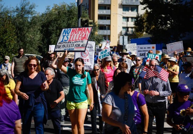 “Como a bandeira do ‘No Kings’ é tão ampla, as pessoas trazem todas as coisas que lhes interessam particularmente”, acrescentou Latham.