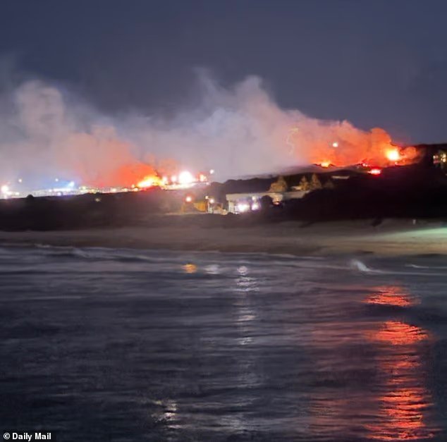 Uma testemunha disse ao Daily Mail: ‘Parece haver um grande incêndio perto da praia no extremo sul.