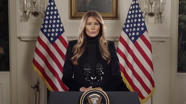 À medida que a programação chegava à Casa Branca, a primeira-dama começou o seu discurso num pódio na Sala de Recepção Diplomática.