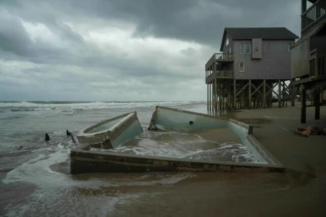Na Carolina do Norte, uma declaração de perigo na praia permanece em vigor até segunda-feira à noite devido à ameaça de correntes de retorno perigosas.
