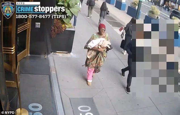 Uma mulher foi filmada caminhando pela cidade de Nova York com o recém-nascido antes de deixar a menina na Penn Station.