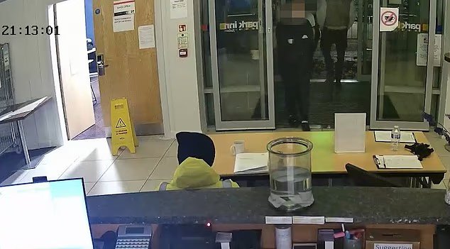 Uma pessoa do júri viu a CCTV que reclamou que Mazek (à direita), Rianon Hoit (à esquerda) e o Park In Hotel de Walsal estavam assistindo algumas horas antes de ele ser morto