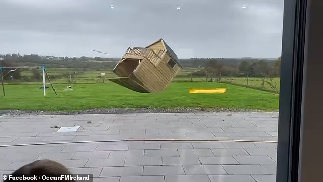 A casa de brincar levantou do chão e arrastou -se pelo jardim durante a tempestade Amy