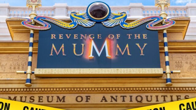 Revenge of the Mummy é uma montanha-russa coberta com queda de 39 pés… e chega a 40 MPH.