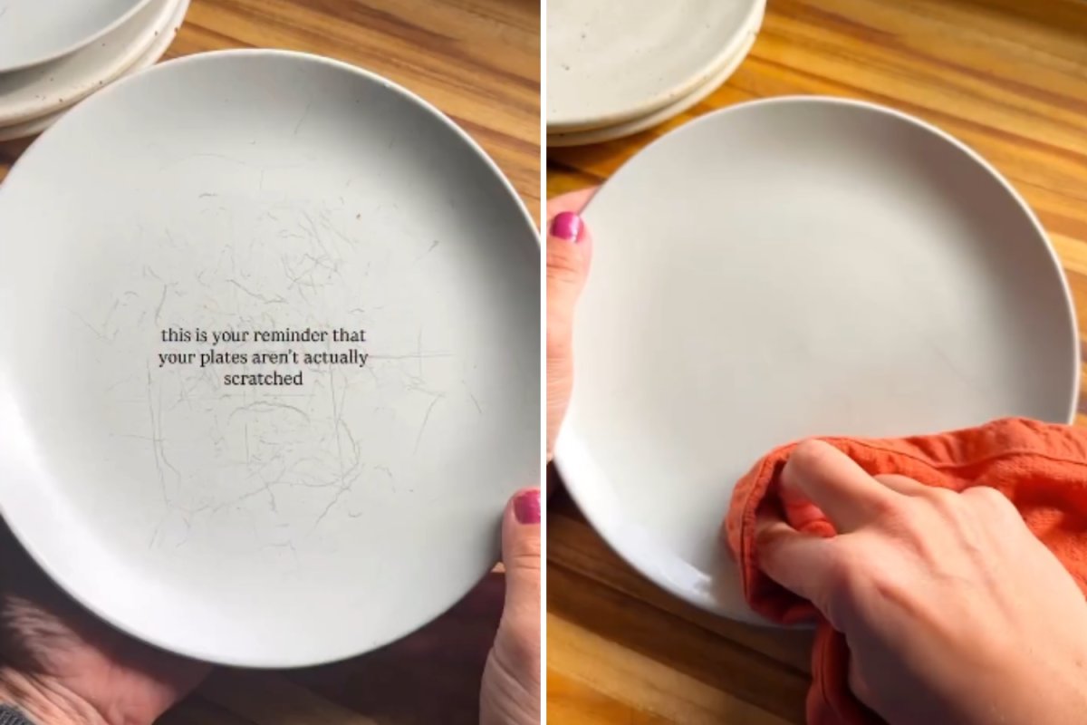No vídeo, ele mostra a todos como tirar as marcas. “Coloque o prato debaixo de água, polvilhe com Bar Keeper Friend (ou fermento em pó, se preferir, pode demorar uma rodada extra), esfregue com um pano úmido, enxágue e seque. Em seguida, coloco os pratos na máquina de lavar louça apenas para certifique-se de que qualquer resíduo tenha desaparecido”, explicou Elkus.