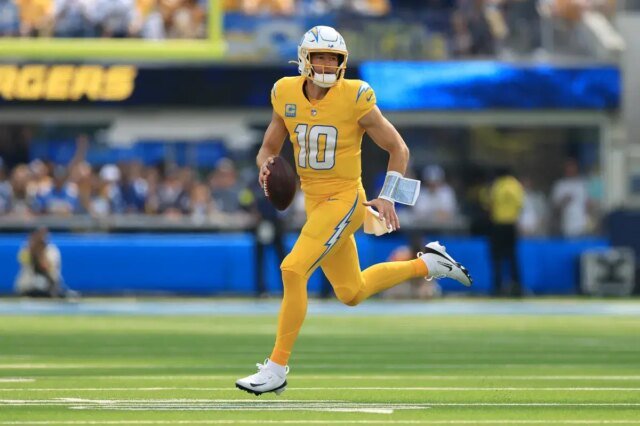 Não estou confiante de que Justin Herbert, que foi pressionado em 27,7% de suas quedas – mais do que qualquer quarterback além de Justin Fields – esteja tendo tempo suficiente para cobrir os Chargers.