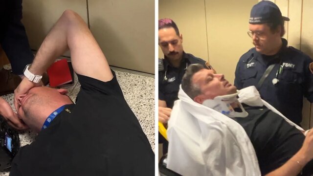 Soluço, não o outro agente – não o elevador – outro membro da mídia joga e joga outro membro que então empurrou outro membro – pensa em Dominos Humanos. A terceira pessoa caiu estritamente … os agentes não prestaram assistência à medida que a porta do elevador se fechou.