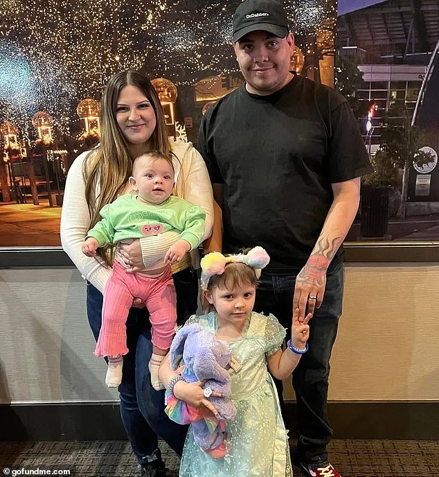 O pai de 25 anos de idade-Brian (no canto superior direito) morreu em um acidente na quarta-feira de manhã. Sua filha de quatro anos (abaixo à direita) estava recentemente sofrendo de câncer