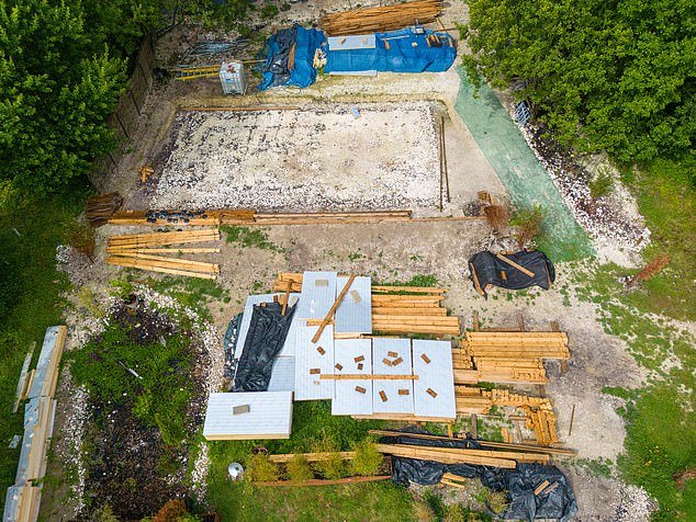 Andrew e Debbie Melbourne arrastaram a estrutura fora da rede de £ 45.000 em junho (retratada após a desconstrução) depois de terem sido atingidos com uma multa de £ 3.500 e libertados por 56 dias para um risco de punição conservadora