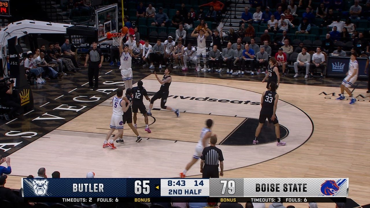 Javan Buchanan Boece State Broncos 4-6565 jogou um dunk que estendeu a liderança contra os Butler Bulldogs.