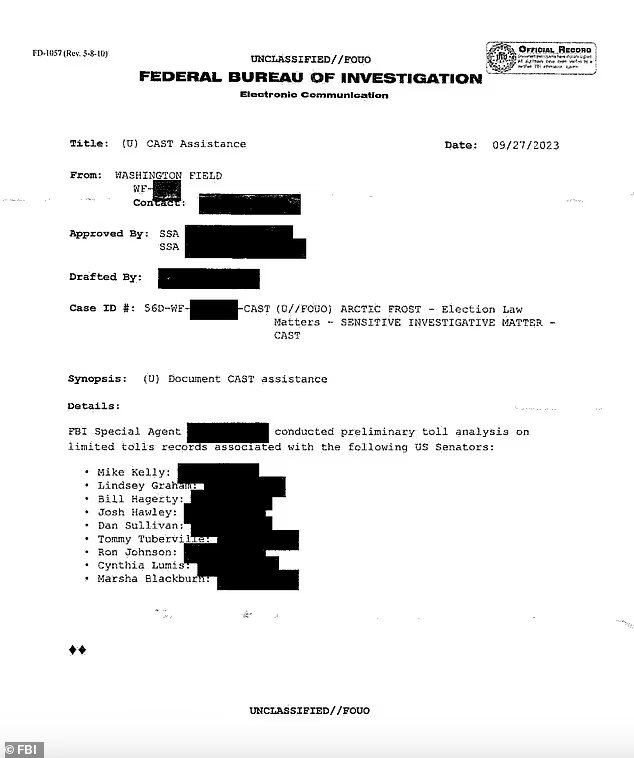 O Gabinete de Grasley publicou este memorando do FBI que discute a vigilância celular de nove advogados republicanos de assentos
