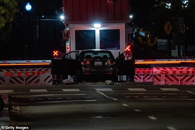 O motorista não identificado bateu nas barricadas no cruzamento das ruas 17th e E NW por volta das 22h30. e foi imediatamente preso por oficiais uniformizados do Serviço Secreto.