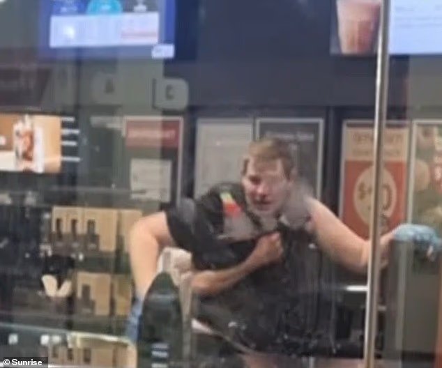 O cliente irritado foi finalmente empurrado e foi mantido ao longo do braço antes de deixar a loja.