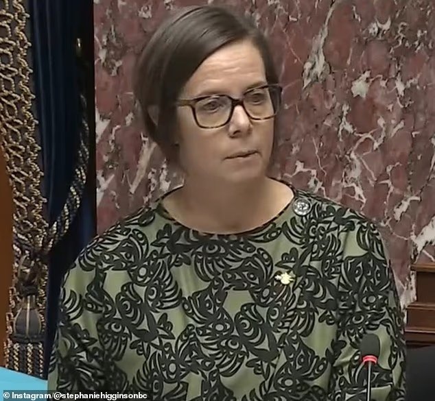 Stephanie Higginson, membro da legislatura da Colúmbia Britânica, falou na segunda-feira em oposição à legislação escolar sobre educação para prevenção de drogas.