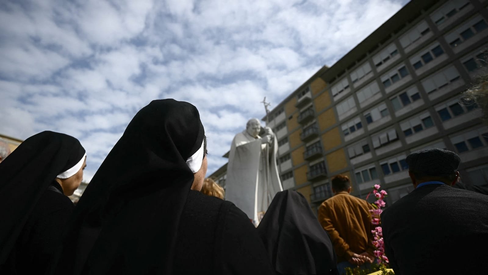 A área perto da entrada do hospital na manhã de domingo estava cheia de pessoas. As pessoas também estavam inundando a Praça de São Pedro no Vaticano, onde seria capaz de ver o papa cumprimentando grandes telas de TV.