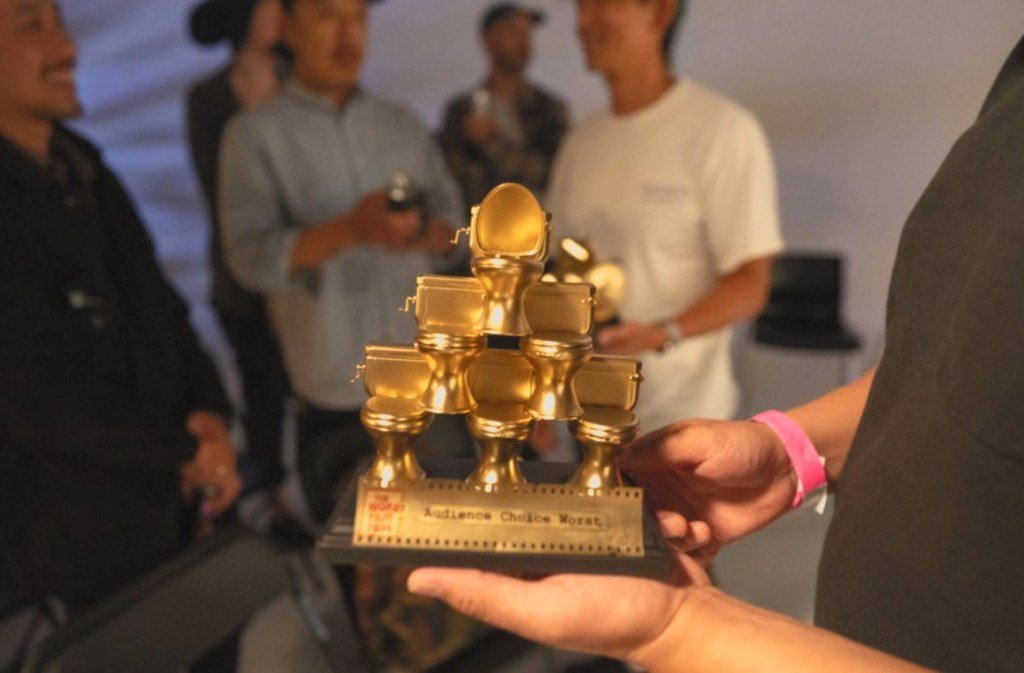 As entradas do ano passado incluem uma versão dolorosa de “The Boss Baby”, cujos heróis do tipo Pint sonhavam em consertar carros, um idiota sobre um autores fracassados que inspiram histórias para seus entes queridos e inspiram algo intitulado “Storm the Tod Crusher”. De acordo com a platéia e o juiz convidado Boots, os vencedores foram embora com o pior troféu perfeito na forma de banheiro.