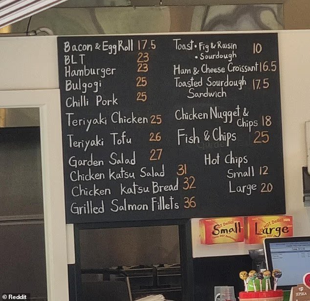 Sydney está em um café popular em chamas do que o preço de várias tripas. A imagem de imagem é a imagem compartilhada nas mídias sociais por um cliente irritado
