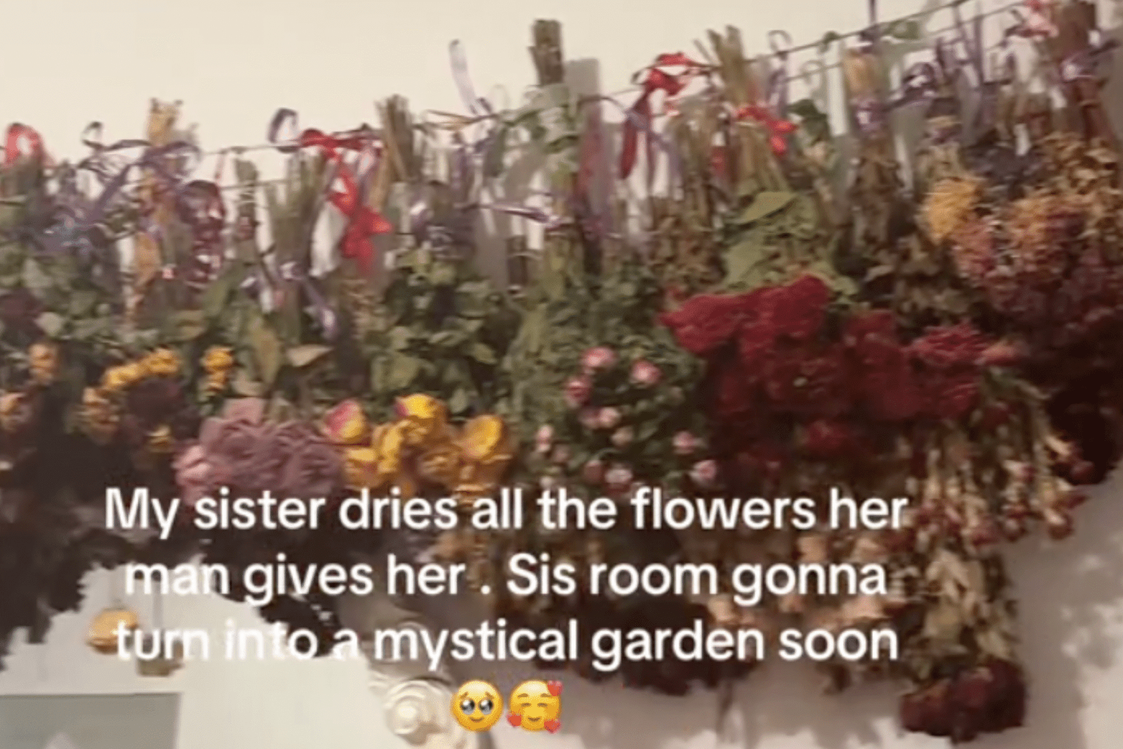 Agora, as flores secas atuam como uma crônica em sua história de amor. Sua irmã Omesh, @Pispinsa 111, A configuração comovente foi capturada em um vídeo de ingresso que se tornou viral ao coletar 10,2 milhões de visualizações e 2,2 milhões de opções. O vídeo, que inclui a legenda nas panelas através de uma linha de flecha seca pendurada em seu quarto: “Minha irmã, seu homem seca todas as suas flores … em breve ela se transformará em um jardim misterioso”.