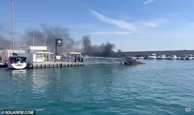 A prefeitura de Fuenzirola disse em comunicado esta tarde: ‘Serviços de resgate e estilo de vida, bombeiros e polícia local de Fuizirola, bem como a Guarda Civil, incendiaram o barco ao lado da boca do porto hoje.