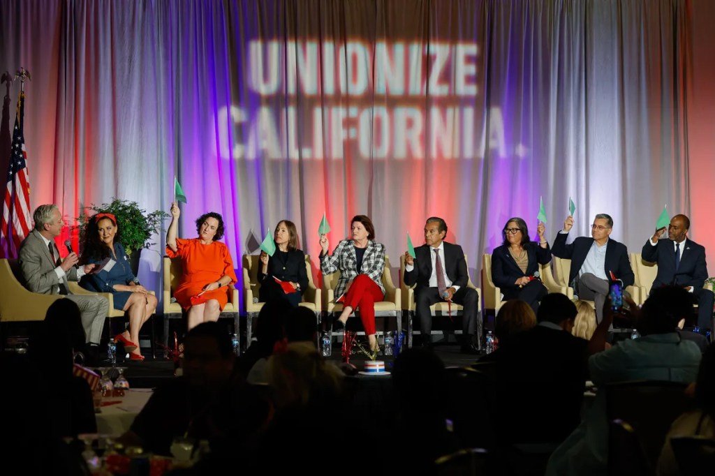 Ex -presidente do Senado Estadual Pro Tem Tony AtkinsEx -secretário de Saúde e Serviços Humanos dos EUA JavierTenente Gov. Elleni KaunalakisEx -representante Katie PorterSuperintendente de Instrução Pública Tony ThormondLos Angeles é o ex -prefeito Antonio Villarigosa E ex -controlador estadual Betty Yeh Coloque -se na exposição na noite de segunda -feira, durante uma conferência legislativa das principais agências sindicais do estado.