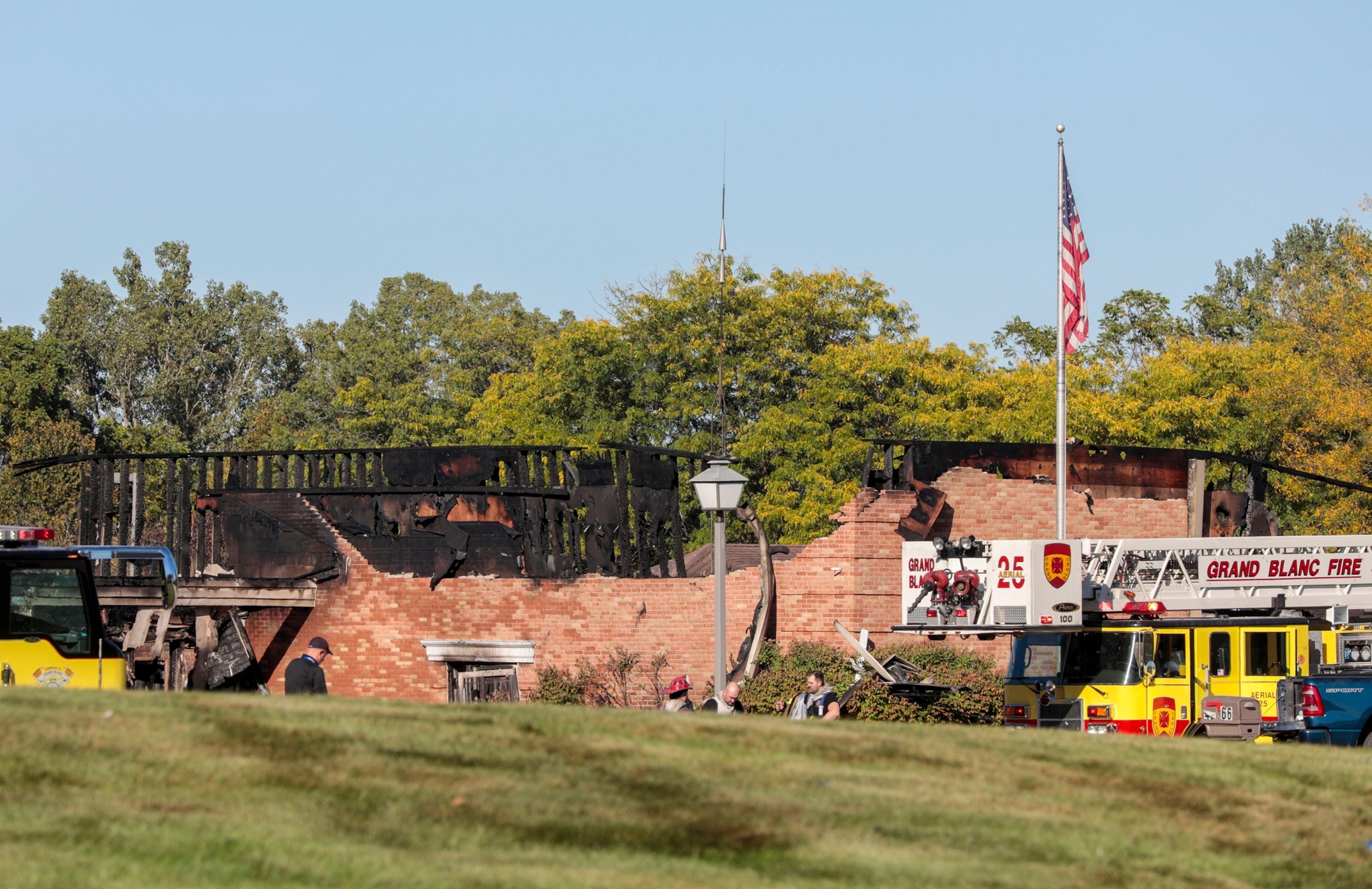 A Igreja queimada queimou quando um serviço de emergência reagiu um tiroteio e fogo nos últimos dias de Michigan, 28 de setembro, igreja de Jesus de 2025 de Jesus.