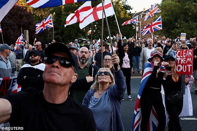 Manifestantes anti -imigrantes em Epping em agosto passado. Conselho Distrital Florestal de Epping, dirigido por Tory, em Essex, ordenou a ordem temporária em agosto deste ano