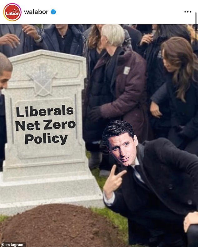 A oposição de Andrew Hastie à meta de emissões líquidas zero – que se pensa ser um problema potencial para os eleitores jovens – é algo que ele está a abraçar descaradamente, publicando novamente uma publicação atacando o WA Labor na sua própria conta do Instagram.