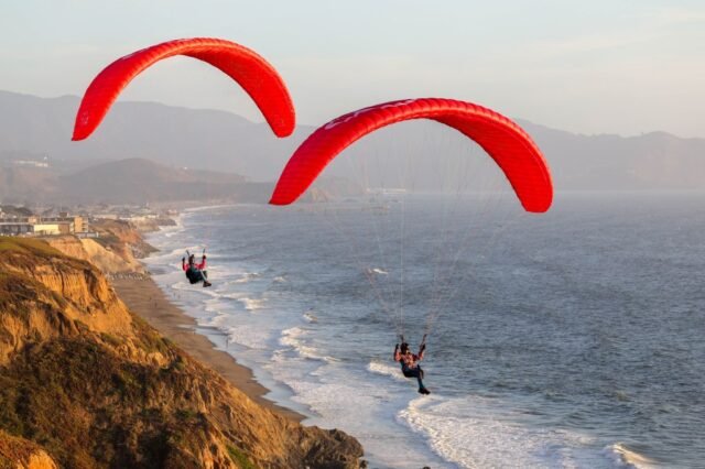 O clima na quinta -feira, com o sol e o céu claro visto no Mussel Rock Park, é perfeito para derrotar ondas de calor na maior parte do Golfo. No entanto, o clima não estava perfeito para pilotos parapeitos. Eles precisavam de mais ventos: “Foi um pouco acidentado”, disse que um parapente foi informado depois de retornar ao Cliff, com 200 pés.