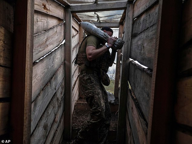 Um soldado carrega uma concha para atirar em tropas russas para a costiantinivaka da região de Donetsk, na Ucrânia, terça -feira, 26 de agosto de 2025
