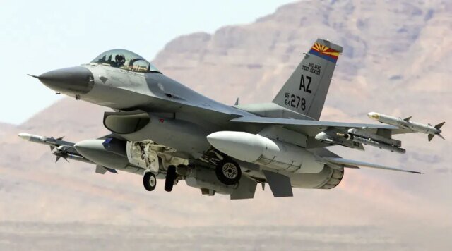 Esta imagem ilustrativa de 2006 mostra que Navedar Las Vegas é um Falcon da Guarda Nacional Aérea do Arizona F -I6C. (Foto de Ethan Miller/Getty Fig.)