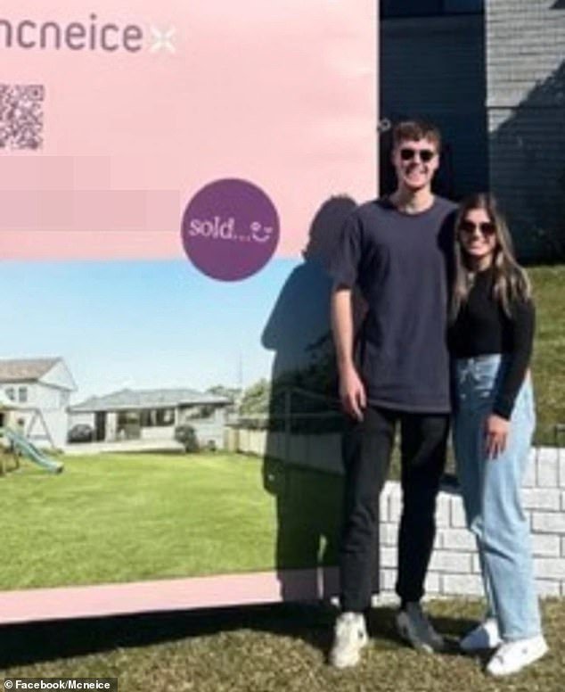 Os compradores da primeira casa Shan e Cloe (ilustrados) a agência imobiliária McNes tira fotos depois de comprar imóveis de US $ 1,3 milhão em seus Wonona