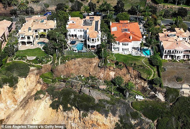 Uma grande parte dos blofs em torno de uma rica Califórnia no sul da Califórnia caiu no fim de semana, causando sérias preocupações entre os proprietários cujas costas estavam diminuindo durante a noite.