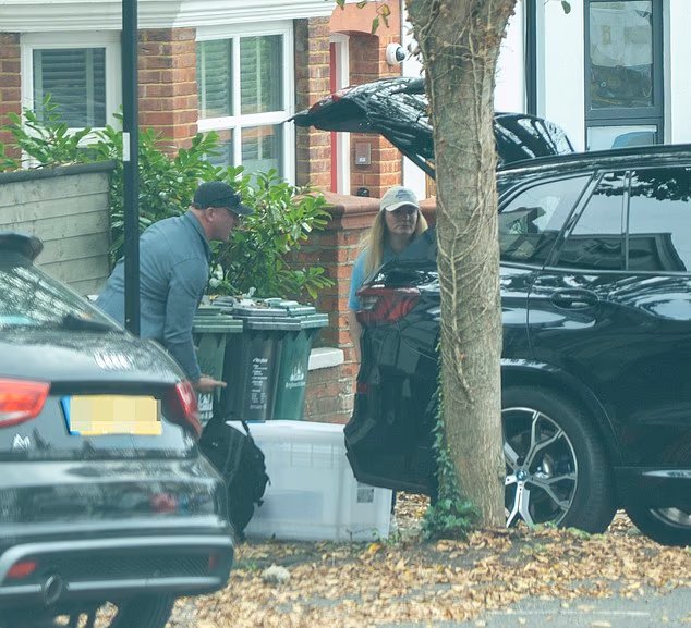 Dois policiais estreitos no parceiro traseiro do MS, Sam Tary Move Bags and Boxes, em um BMW X5 em suas duas casas em um BMW X5 em suas duas casas no filme publicado exclusivamente no Mail no domingo.
