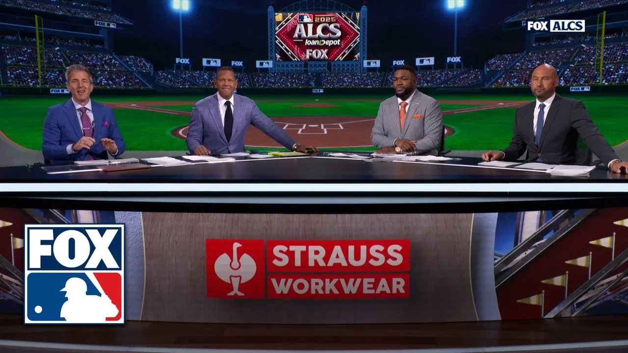 Derek Jeter, Alex Rodriguez e David Ortiz reagem à vitória do Toronto Blue Jays sobre o Seattle Mariners no jogo 7 do ALCS.