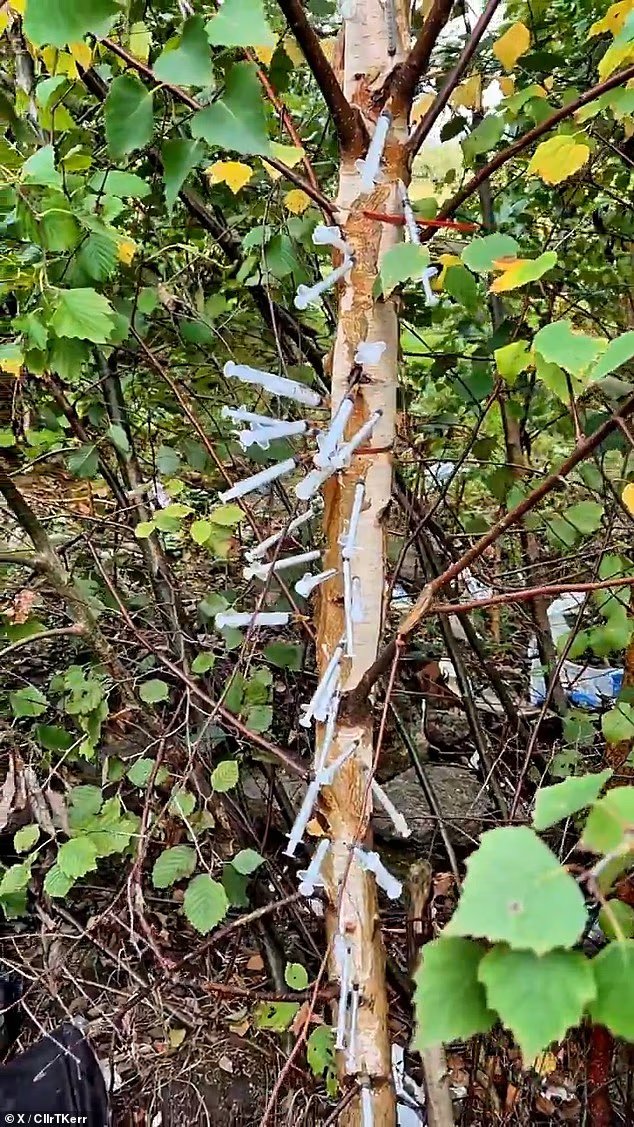 Coberto em seringas sujas de heroína, uma droga escolar em uma árvore, é descoberta exatamente a gaze da única sala de uso ‘segura’ da Escócia.